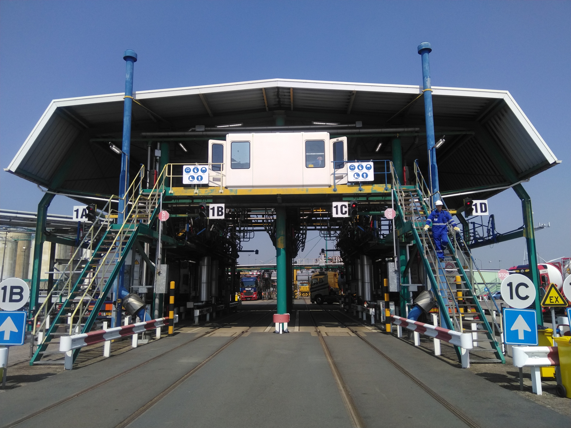 Every day, around 40 to 50 trucks come to the TTR terminal to load and unload liquid chemicals. These trucks are handled by our day shift operators at four loading bays and four unloading bays. Each truck driver is assigned to a specific bay, depending on availability and the type of cargo to be loaded or unloaded.